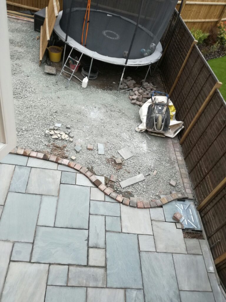 It was blank canvas! Our requirements were simple; astro turf, a patio and space for the trampoline.
